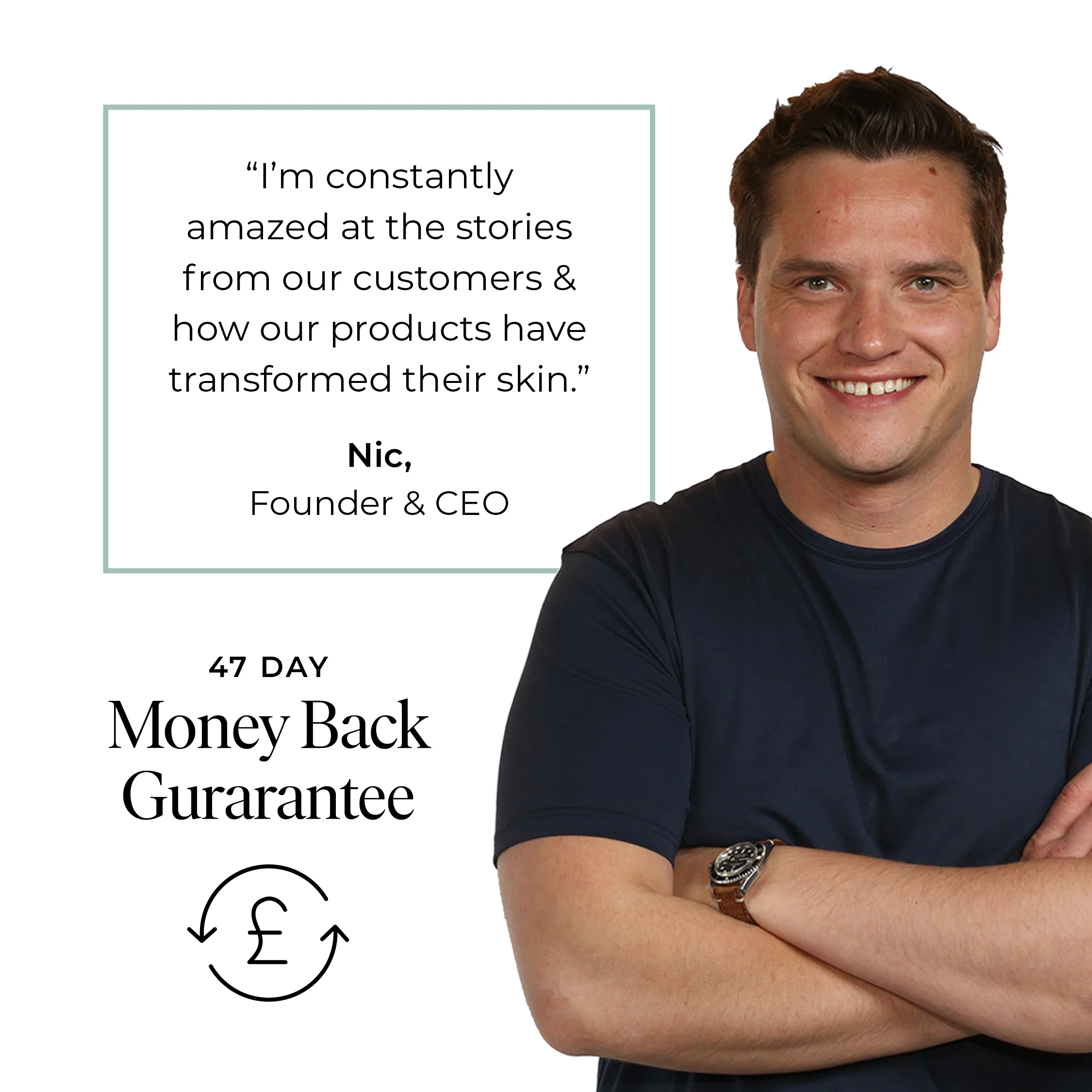 Only 47 Skin products contain our unique ingredient, Silver Chitoderm®. The Silver and the Chitoderm bond together to create an invisible barrier, killing 99.9% of the bacteria that cause breakouts. Clinically-tested, dermatologist-approved, it's why 47 Skin is skincare that actually works.